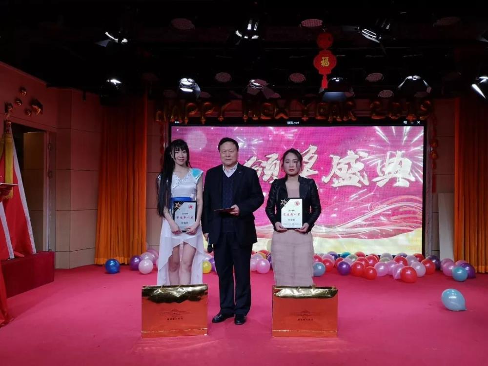 集團和公司領(lǐng)導為榮獲先進(jìn)的公司員工頒發(fā)獎牌和獎品。
