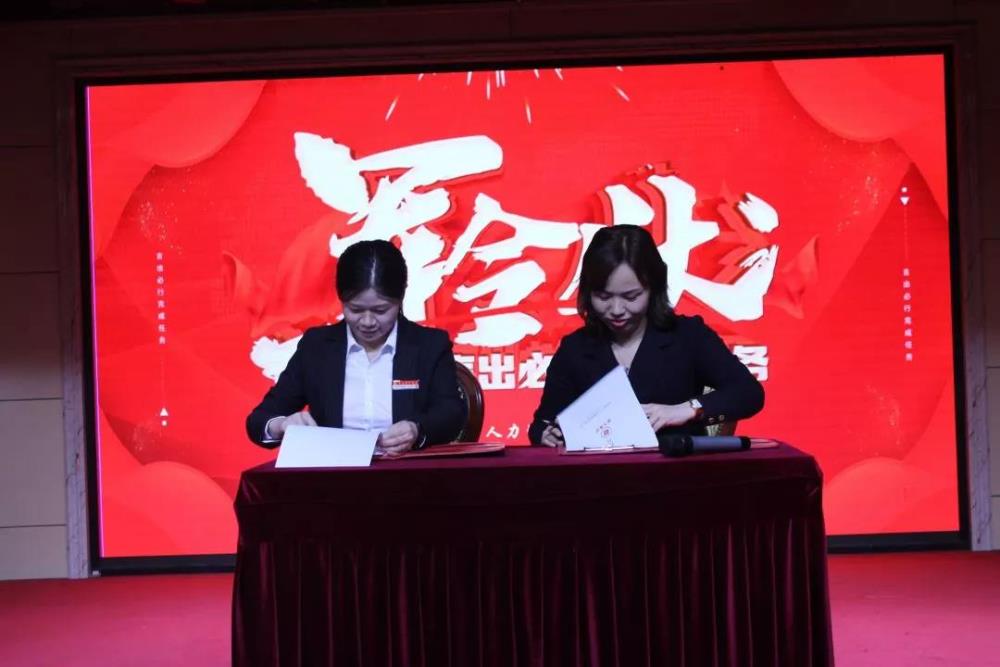 為了將各位老總對完成2020年業(yè)務(wù)經(jīng)營(yíng)指標的信心轉化為必勝的決心,本次工作會(huì )特意設置了立軍令狀環(huán)節,派遣服務(wù)公司總經(jīng)理劉苗,外包服務(wù)公司總經(jīng)理張瑞,品牌市場(chǎng)部總經(jīng)理張芳芳代表各自團隊鄭重立下軍令狀,簽下責任書(shū),輕輕的幾頁(yè)紙張,書(shū)寫(xiě)的是沉甸甸的責任,言出必行,使命必達。