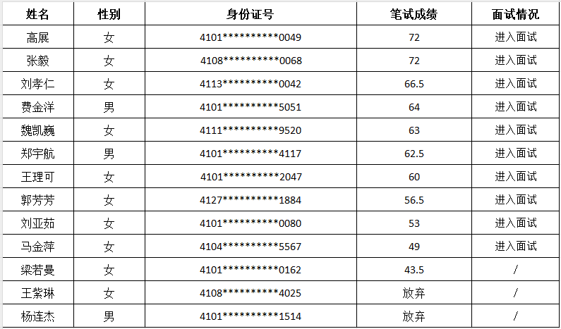 一、筆試成績(jì)與進(jìn)入面試人員名單